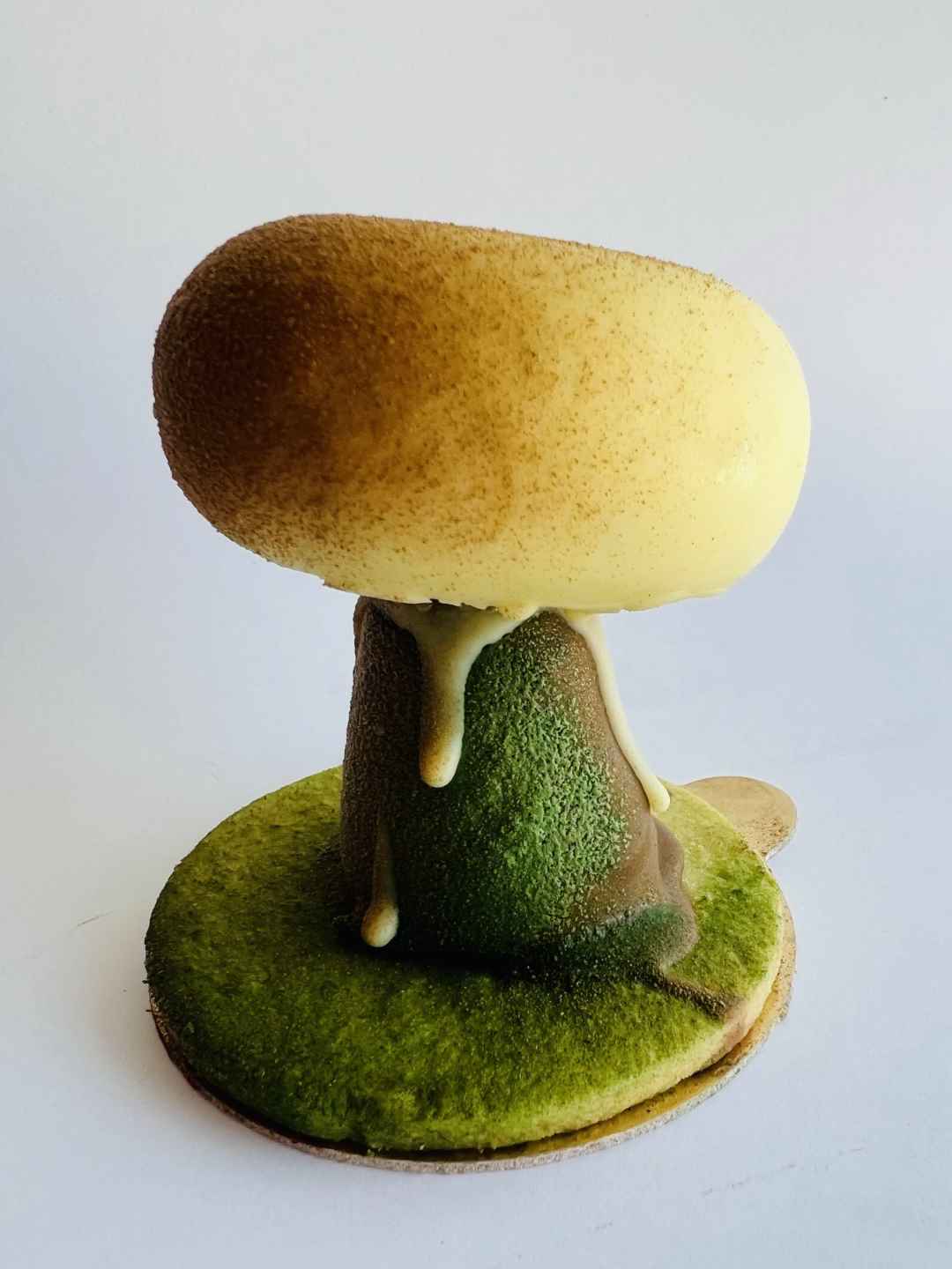 Ez az exkluzív, gomba formájú édesség két mousse rétegből épül fel: az alsó rész egy selymes tejcsokoládé mousse, melyet lágyan roppanó étcsokoládé réteg ölel körül. A gomba kalapja pedig valódi mestermunka: fehércsokoládé mousse frissen reszelt szarvasgombával kellemesen ízesítve, fehér csokoládé bevonattal – egy merész és előkelő ízharmónia, amit ritkán tapasztalni egy desszertben.