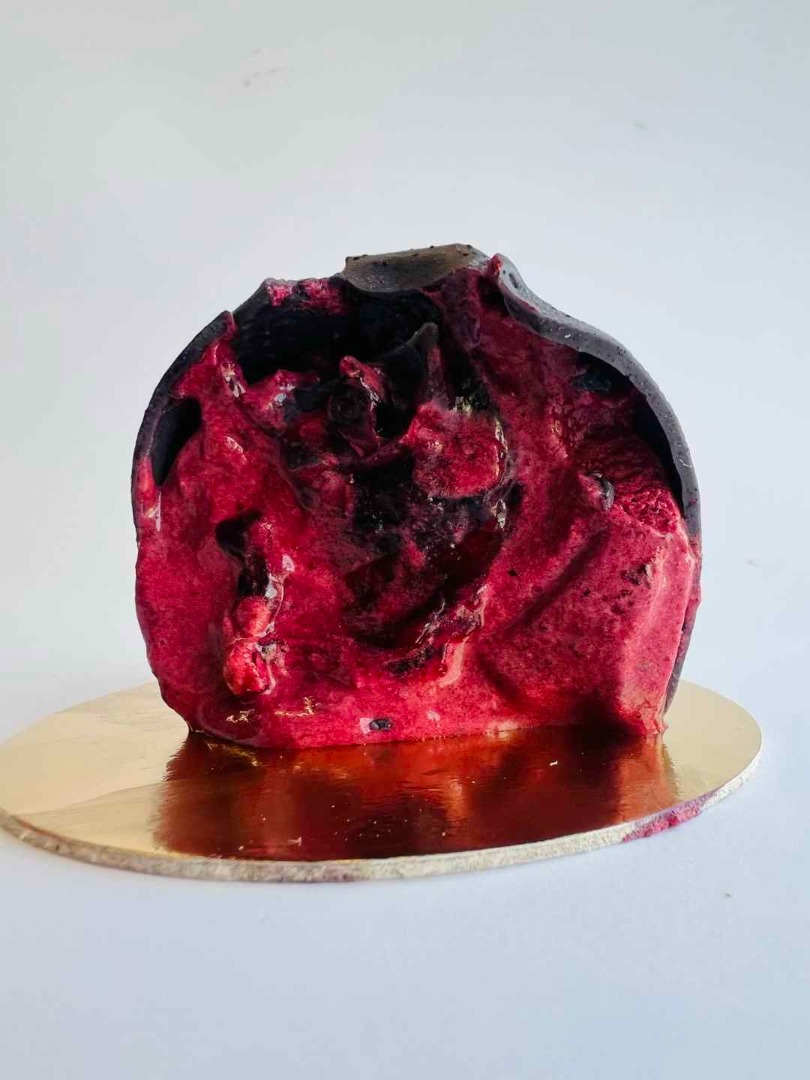 A roppanós fehércsokoládé burok alatt gazdag, krémesen lágy áfonya mousse rejtőzik, szívében egy selymes, 100%-ban valódi áfonyából készült zselés betéttel. Az intenzív, enyhén fanyar bogyós ízvilág tökéletes egyensúlyban van a fehércsokoládé édességével – egy elegáns, frissítő desszertélmény, amely minden falatnál meglep.