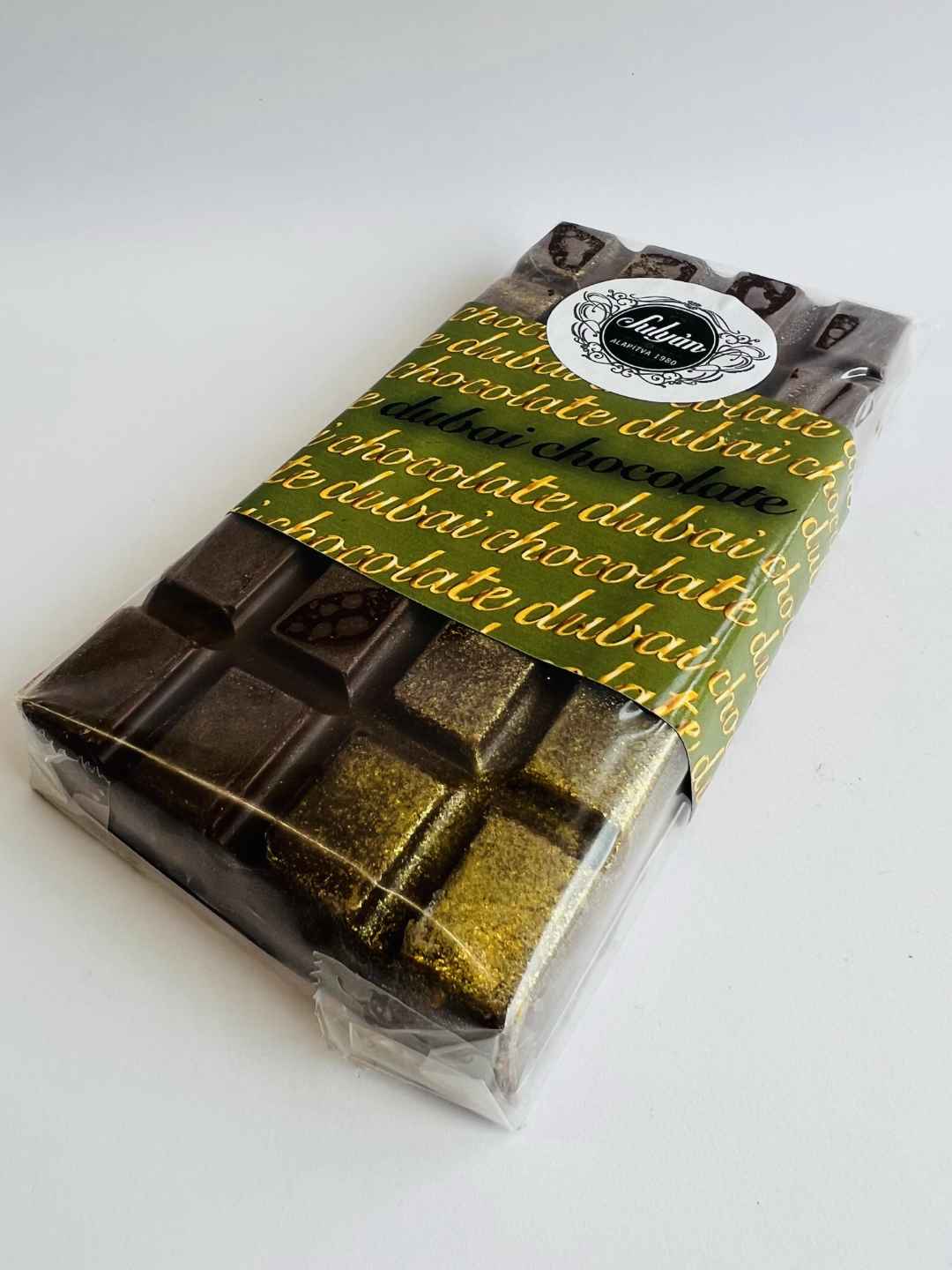 Engedd, hogy elrepítsünk a fényűző Dubai világába egy falatnyi csokoládéval! A titokzatosan arany színben fénylő tejcsokoládé burok alatt selymes pisztáciakrém, karakteres tahini paszta és ropogós kadayif tészta rejtőzik. Ez az izgalmas találkozás a keleti fűszerek hangulatát, a bazárok titokzatos varázsát és a modern csokoládé különlegességek eleganciáját idézi.