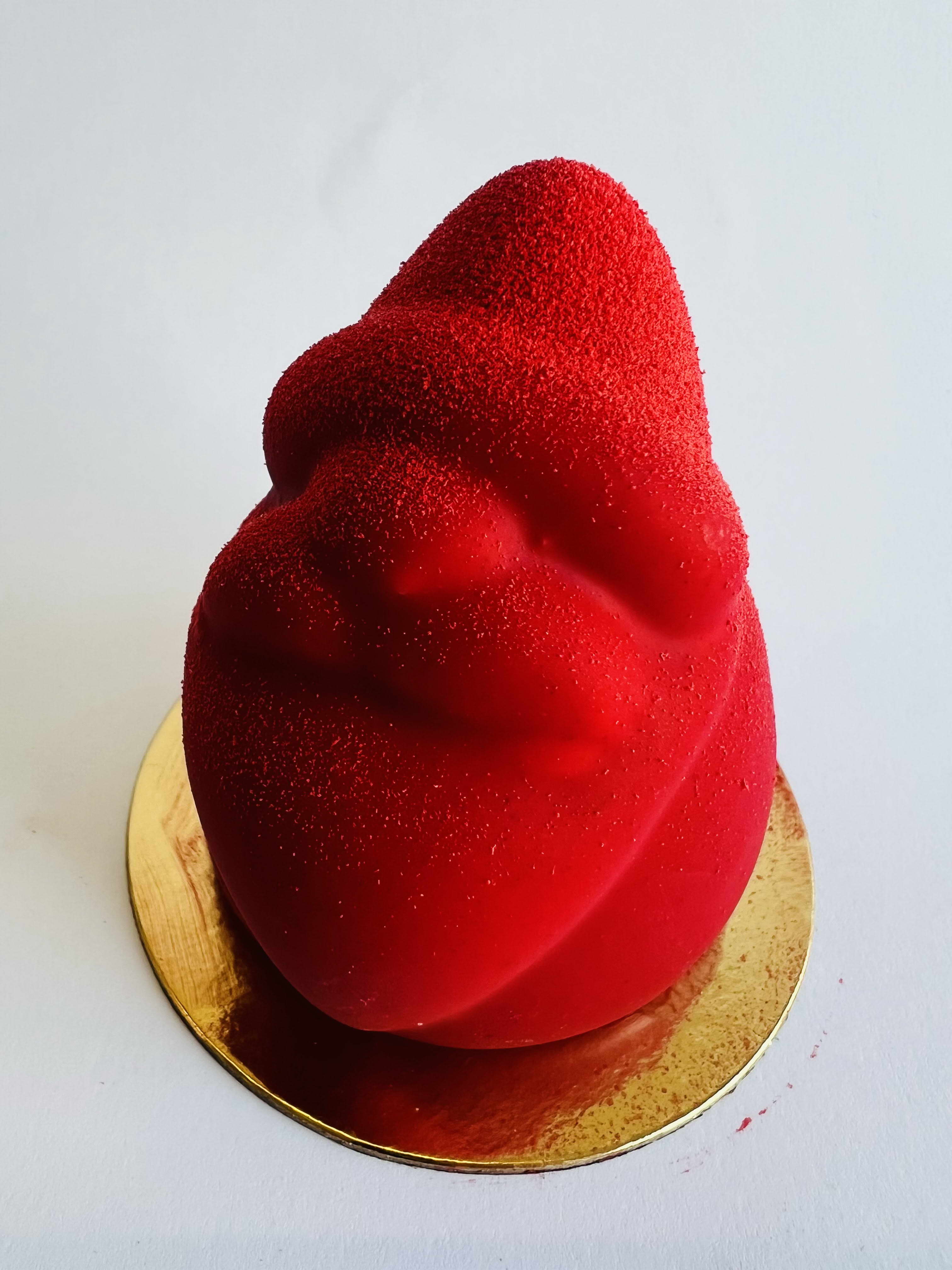 Puha, kókuszos Raffaello mousse, benne egy lágy, krémes, tejjel selymesített betét… és mindezt pirosra festett roppanós fehércsokoládé burok öleli körbe, mintha maga a Mikulás bundás kabátját hagyta volna hátra. Ünnepi, tiszta, könnyed – a tél legfinomabb ajándéka.