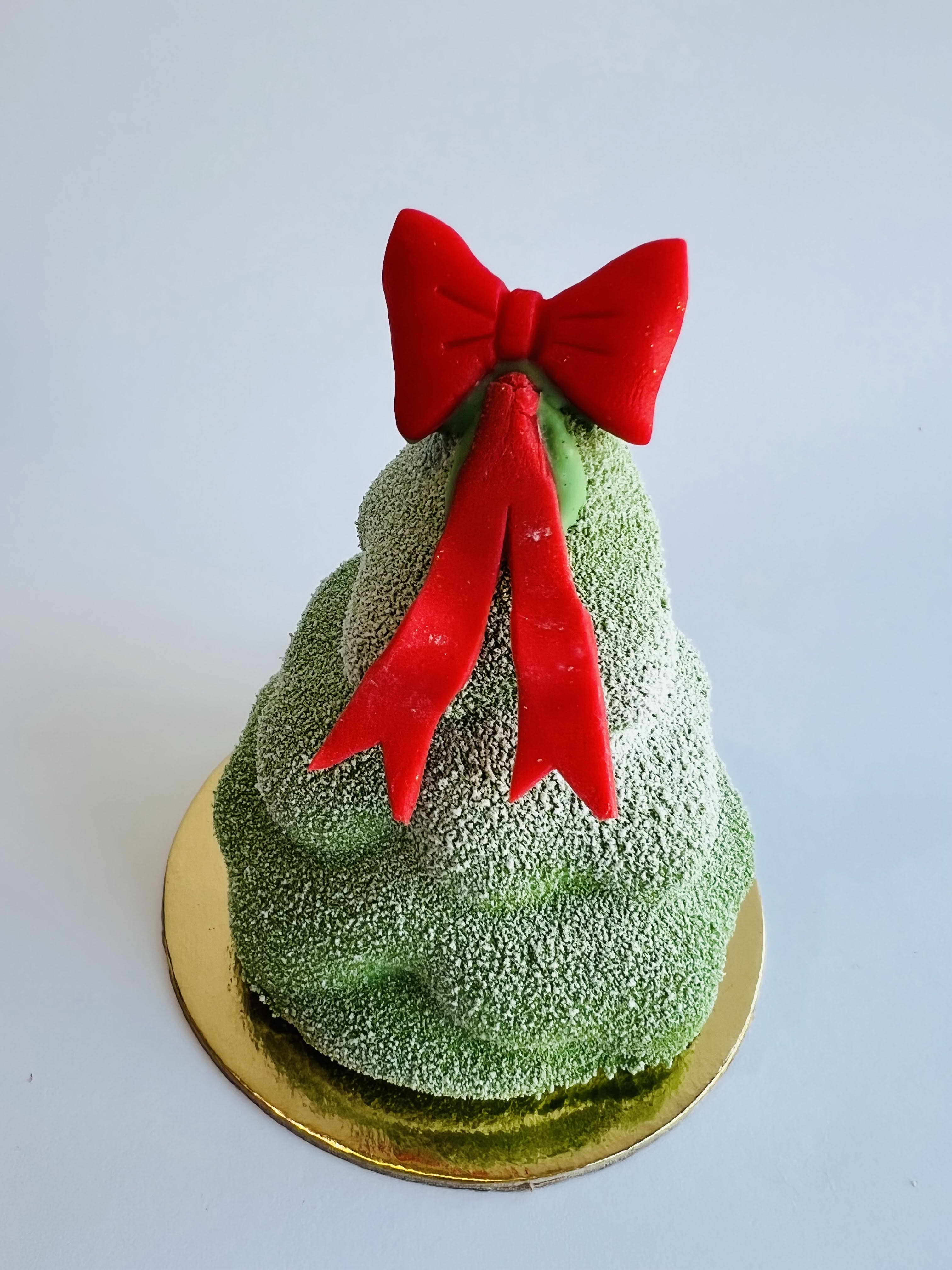 A karácsony zöldje és pirosa ebben a fenyőfa alakú remekműben öltenek testet. A prémium pisztáciamousse földes, elegáns ízét ragyogóan egészíti ki a friss málnazselé. A zöldes színezett fehércsokoládé bevonat és a fehér bársony kakaóvaj fújás hólepte varázst ad a desszertnek – olyan szép, hogy kár lenne felvágni… de még nagyobb kár lenne nem megkóstolni.