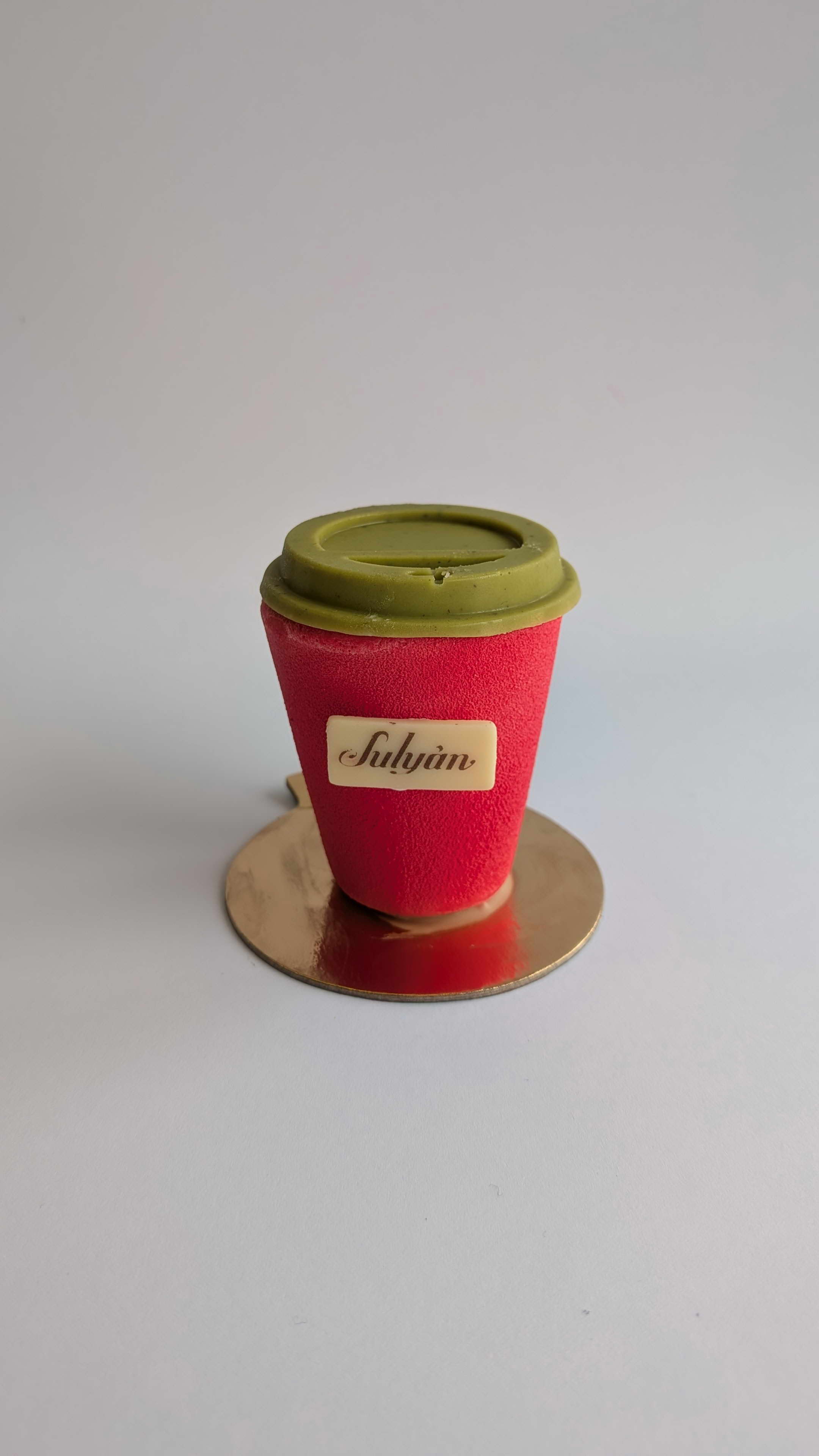 Selymes epres mousse krém és epres babapiskóta, tetején matcha teás fehércsokoládé fedél. Letisztult elegancia, meglepő rétegek, kifinomult ízharmónia.