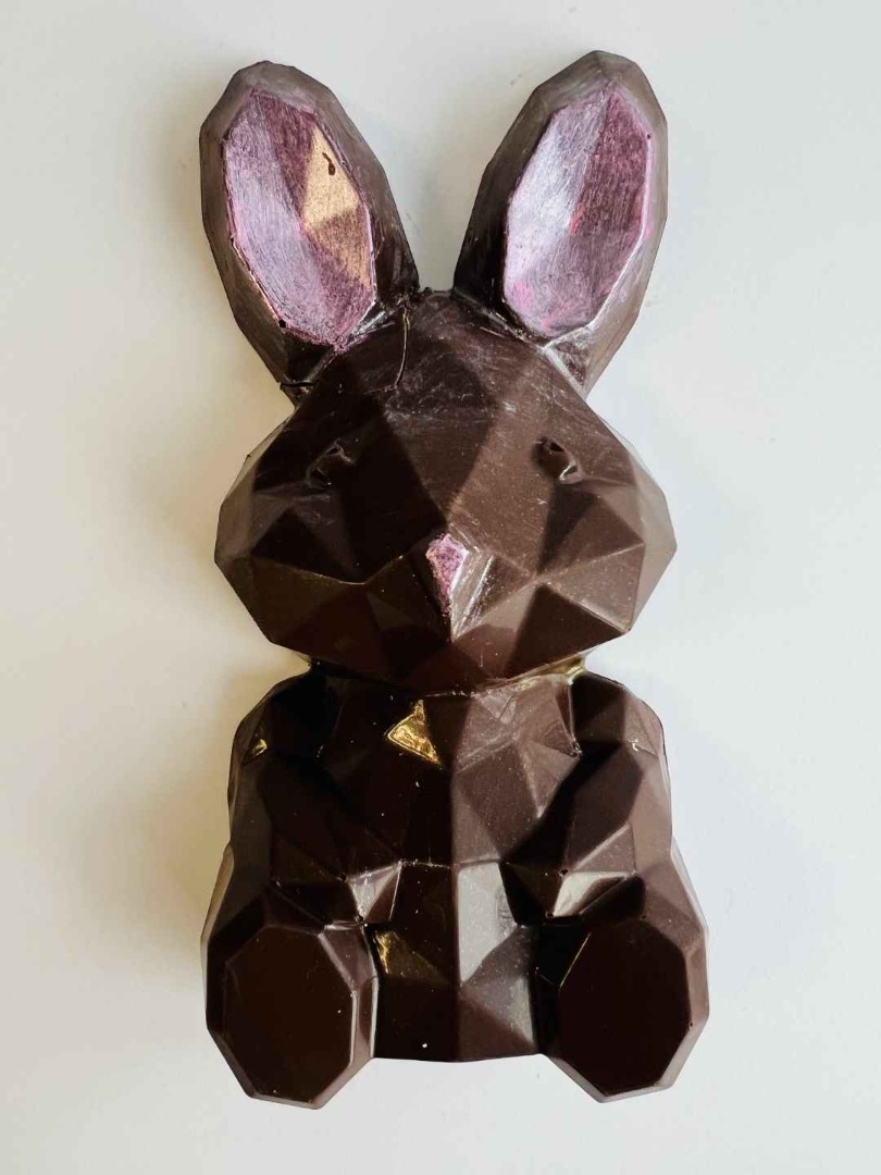 Fontos: a csokoládé a nyuszi elülső felét formázza, nem teljes, térbeli (3D) figura.