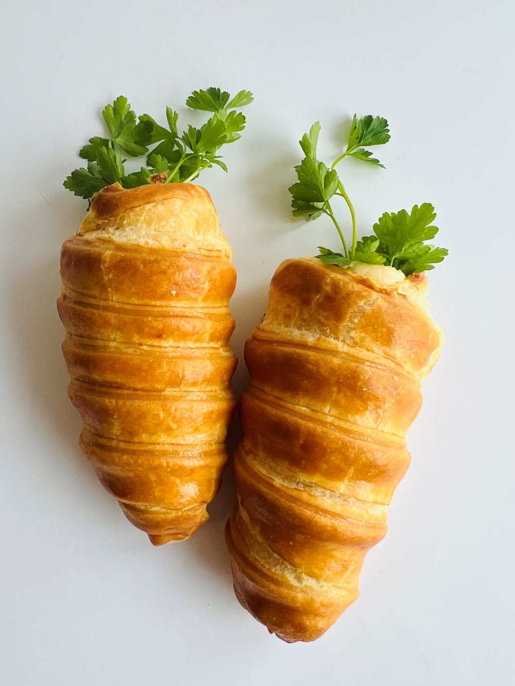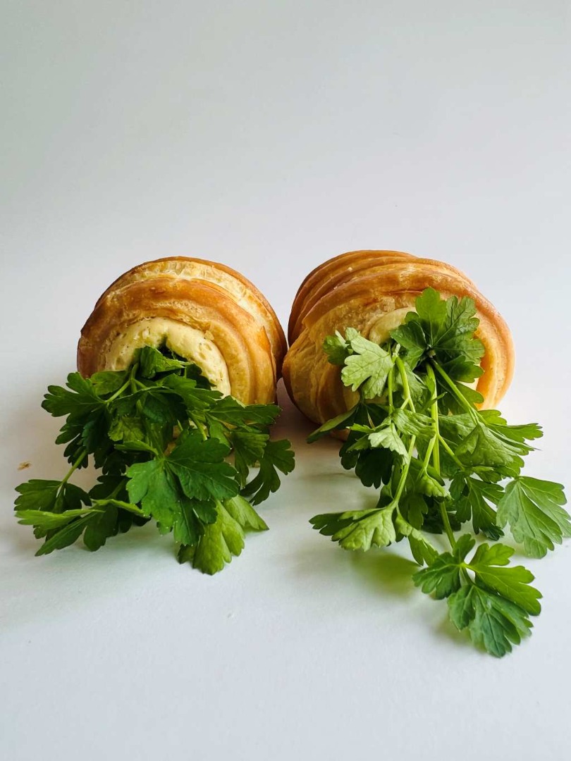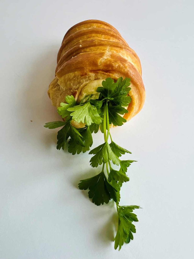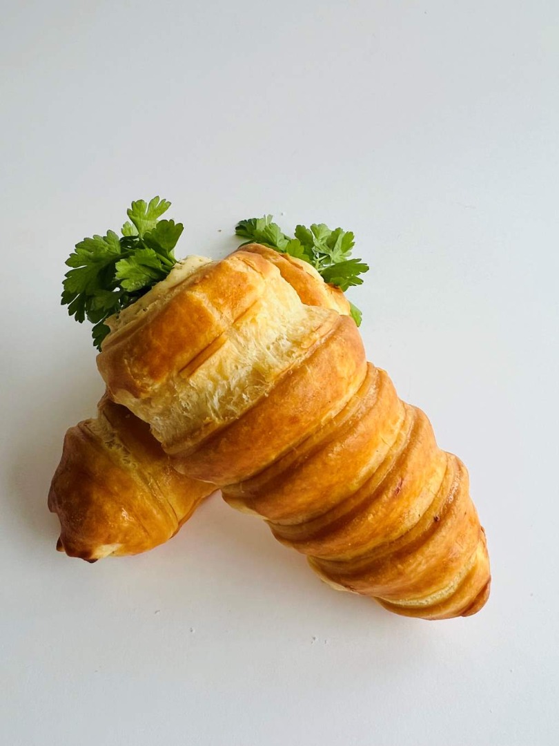 Valódi vajas, leveles tészta, benne tojásból főzött, vajjal habosított krém, és rengeteg sajt, amitől minden falat telt, krémes és emlékezetes.A játékos forma végén friss, zöld petrezselyemből készült „répalevél” teszi teljessé az élmény.