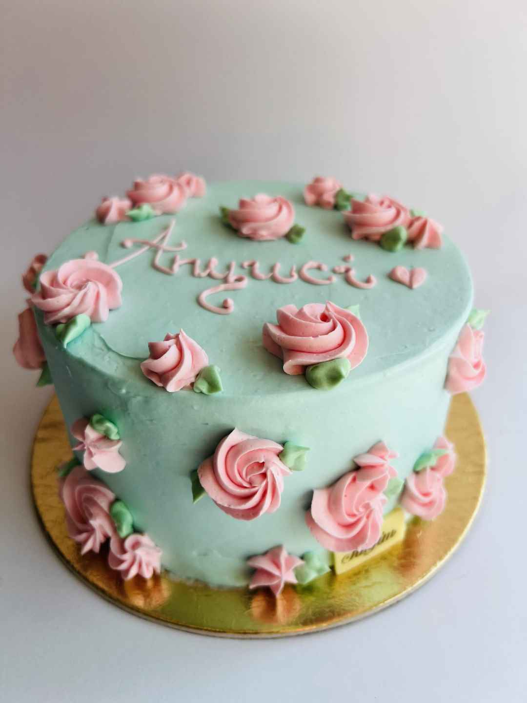Kék alapon rózsaszín rózsás torta